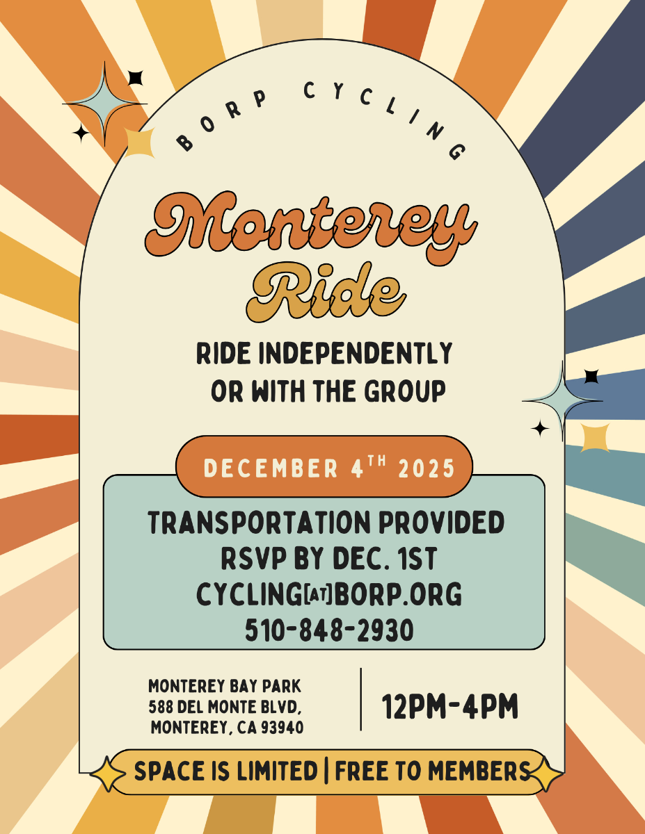 To register please call or email: cycling@borp.org or 510-848-2930 by Dec. 1st.