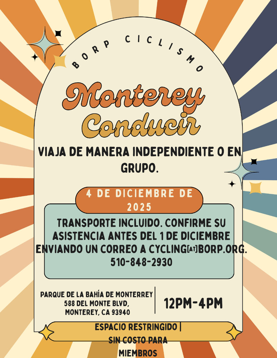 Para registrarse, llame o envíe un correo electrónico a: cycling@borp.org o 510-848-2930 antes del 1 de diciembre.